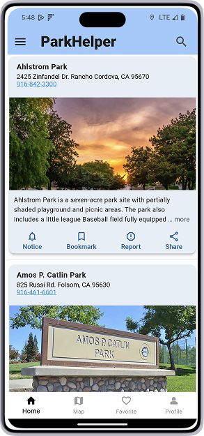 This mobile app is also targeted to municipal Park & Rec staff for their day-to-day field work usage. A separate software (via web interface) also allows city staff to view aggregated park info for other purposes such as park usage and maintenance history for city planning and budget projection.